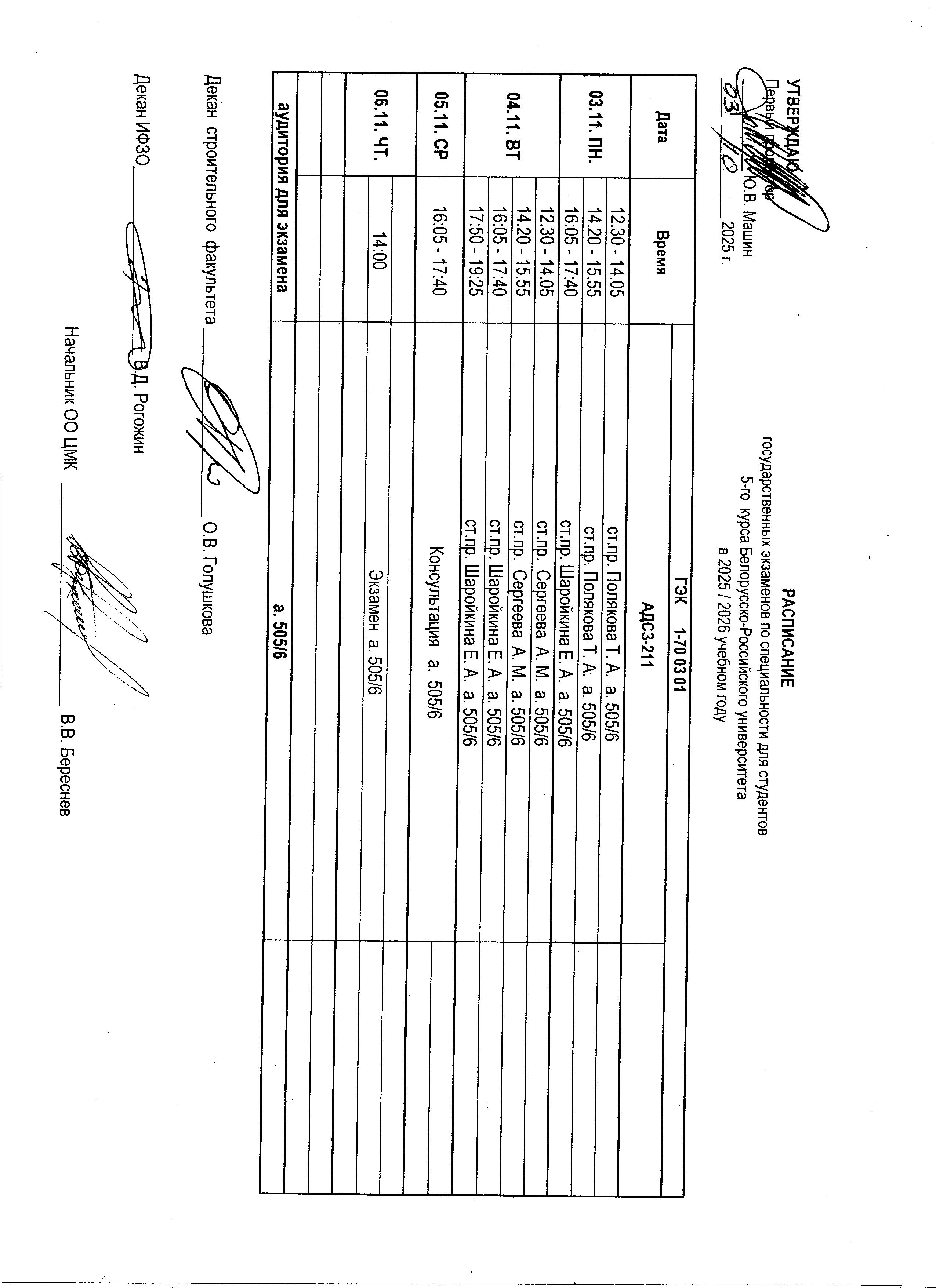 | 23.10.2025 | Расписание работы ГЭК группы АДСЗ-211 |